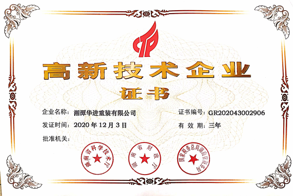 近日,湘潭華進重裝有限公司收到《高新技術(shù)企業(yè)證書》。本次系華進重裝首次申請高新技術(shù)企業(yè)認(rèn)定,華進重裝通過認(rèn)定連續(xù)三年內(nèi)(2020-2022年度)將享受高新技術(shù)企業(yè)的相關(guān)稅收優(yōu)惠政策。